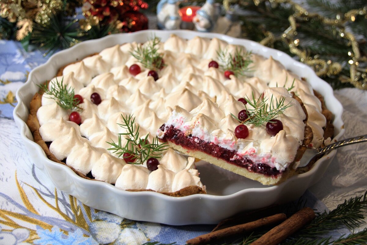 Пирог «Клюква под снегом» станет замечательной альтернативой традиционному праздничному торту. Этот десерт особенный благодаря гармонии кислых ягод и сладкой меренги. Песочная основа и немного корицы в клюквенной начинке придают пирогу новогоднее настроение, пишет Рецепты от 7dach.