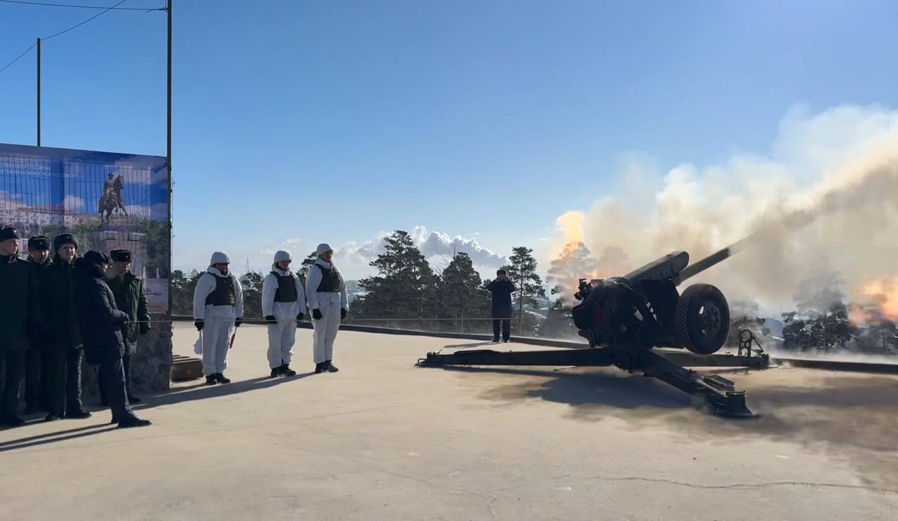 По сложившейся традиции ровно в полдень под звуки государственного гимна были подняты флаги страны и республики. Почетное право произвести выстрел из сигнального орудия было предоставлено подполковнику Дашибалу Мункожаргалову, участнику специальной военной операции, командиру разведывательного батальона, удостоенному звания Героя России, а также трёх орденов Мужества и других государственных наград.