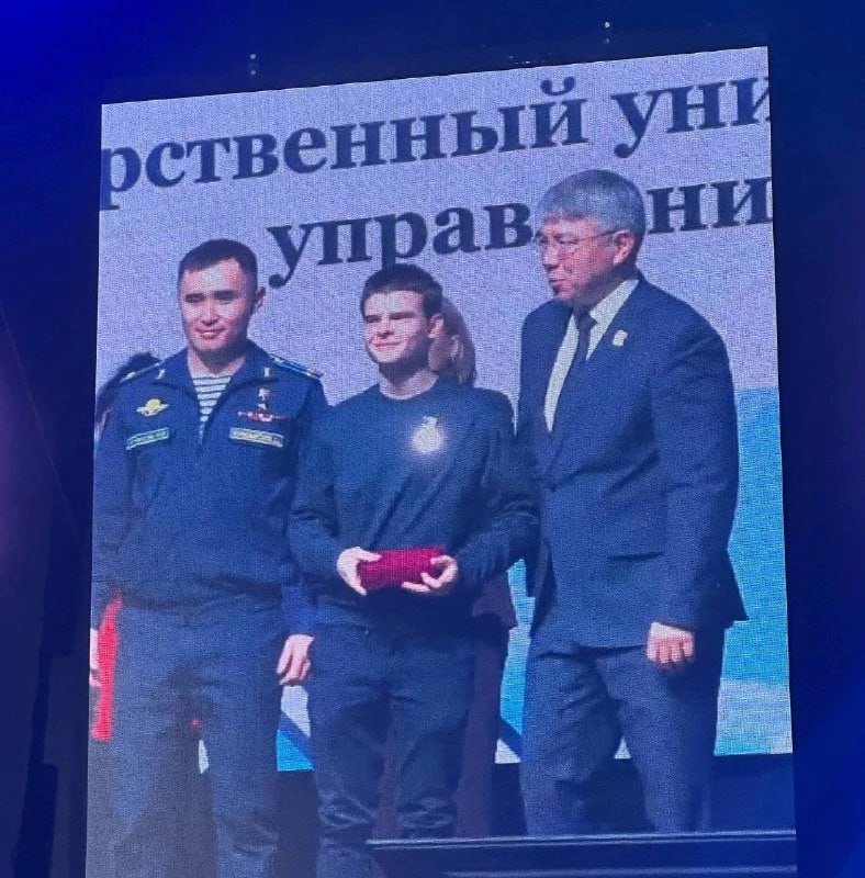 На Форуме патриотов Глава Бурятии Алексей Цыденов вручил памятную медаль студенту Игорю Харитонову за вклад в добровольческую деятельность.