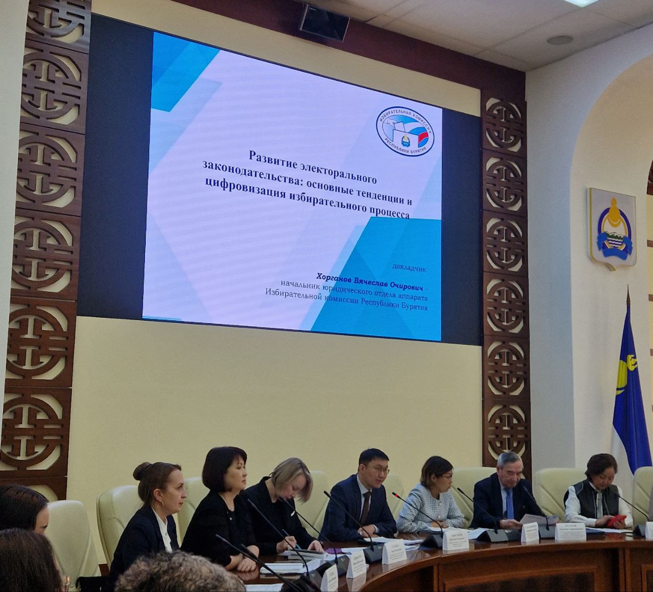 От Избирательной комиссии Республики Бурятия выступил Хорганов Вячеслав Очирович, начальник юридического отдела аппарата Избирательной комиссии Республики Бурятия, с докладом «Развитие электорального законодательства: основные тенденции и цифровизация избирательного процесса».