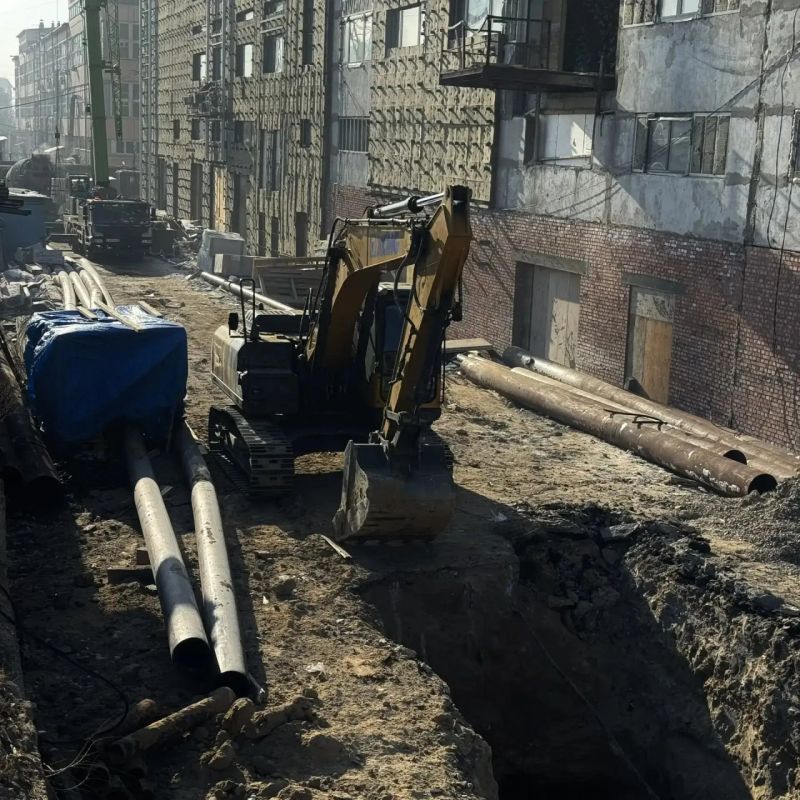Совместно с подрядной организацией ООО «Унистрой» на объекте ведется строительство двух водопроводных камер, а также идет прокладка трубопровода диаметром 300 мм. Параллельно разработаны котлованы для последующей прокладки трубопровода методом горизонтально направленного бурения.
