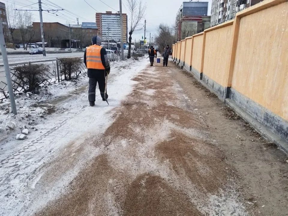 -На сегодня у нас акцент идет на тротуары. Техника, которая работала на уборке снега, направлена на них. Будем подсыпать до тех пор, пока снег не растает. На сегодня мы убрали снег со всех остановок города, чтобы там не было скользко. А также на переходе на Центральном рынке и с откосов на проспекте 50-летия Октября, чтобы по тротуарам было комфортно ходить, — рассказал директор Комбината Игорь Мункуев.