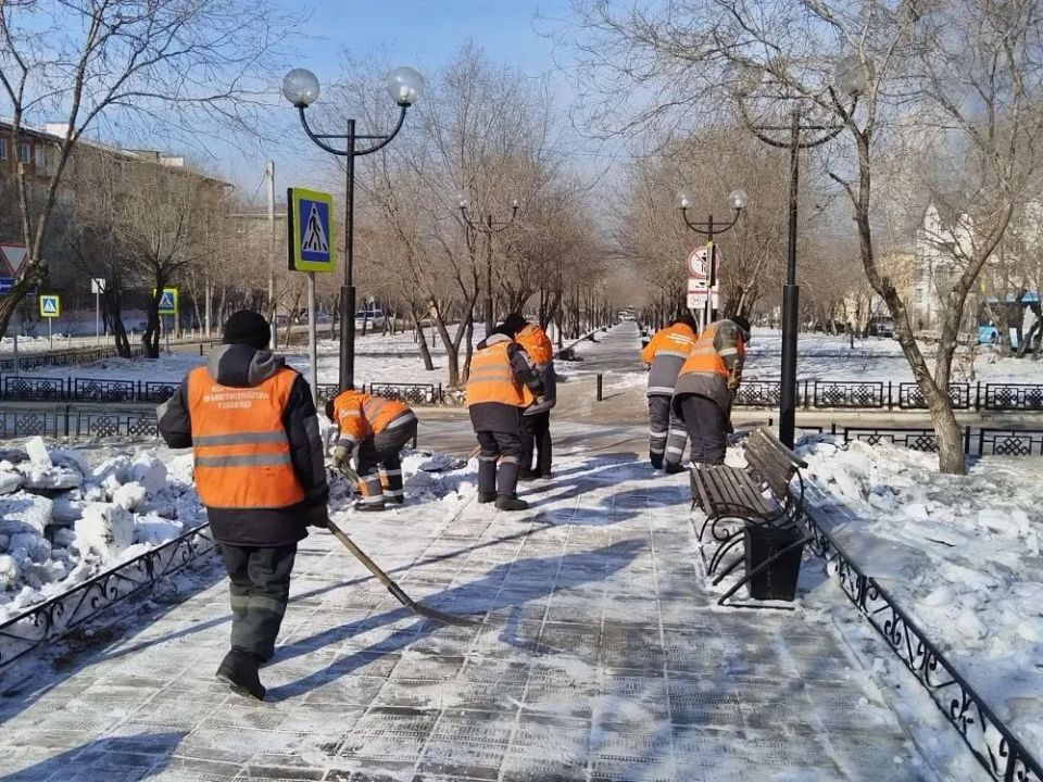 Ежедневно на улицах города работает 120 уборщиков и около 50 единиц техники. Идет уборка снега и подсыпка наиболее скользких мест на тротуарах, лестницах, переходах.