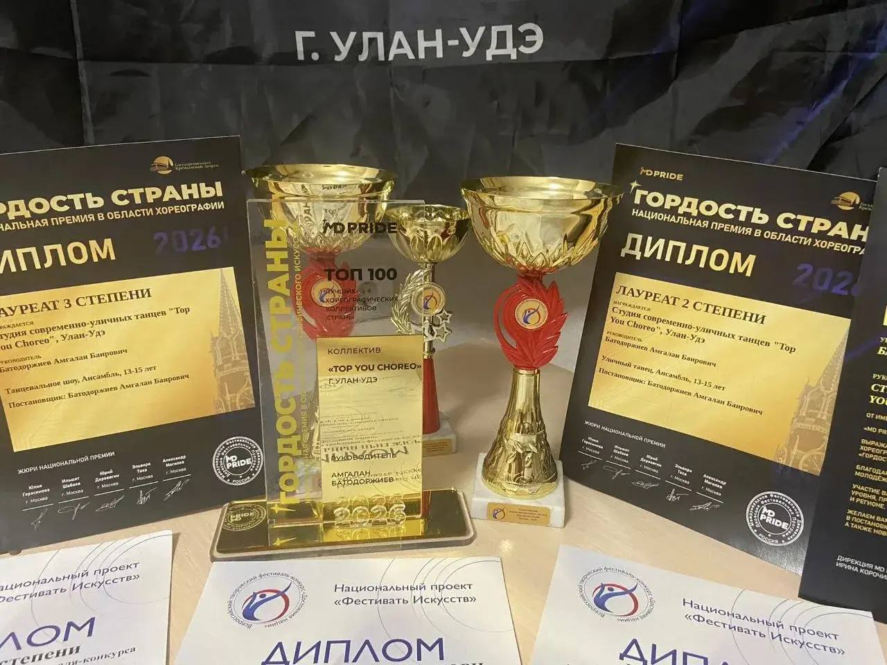 Детский танцевальный коллектив из Улан-Удэ занял призовые места в трех номинациях Международной Национальной Премии в области хореографического искусства «Гордость Страны». И получил право выступить на гала-концерте в Государственном Кремлёвском дворце. В коллективе – 28 ребят, большинство – из школы №8.
