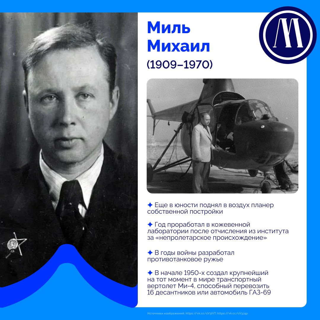 Буква М — Миль Михаил Леонтьевич — создатель винтокрылых машин