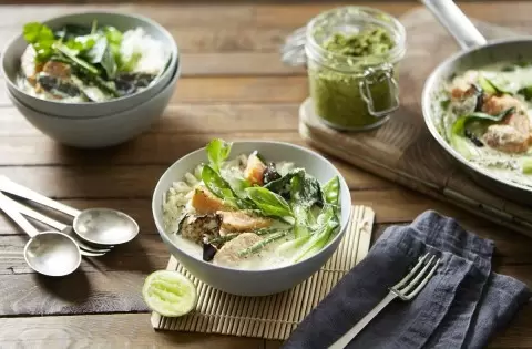 Готовая паста может храниться в холодильнике до двух недель или же быть замороженной на срок до трех месяцев. Для использования пасты достаточно обжарить одну столовую ложку на человека вместе с курицей или овощами и залить кокосовым молоком, чтобы подать с ароматным рисом жасмин и свежими листьями кориандра.
