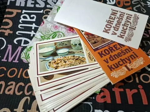Сегодня в мире кулинарии на повестке дня уникальный набор открыток, который был издан в Праге ещё в 1980-х годах. Этот привлекательный комплект включает в себя 21 открытку и брошюру, посвящённую специям. Открытки напечатаны на трёх языках: русском, чешском и немецком, и имеют внушительные размеры 10 на 18 см. Тираж составил 110 000 экземпляров.