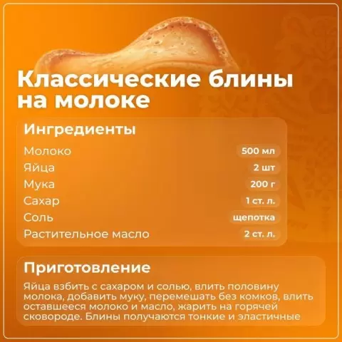 - Классические блины: Нежные, с легким хрустом, идеально подходят для подачи с медом или сгущенкой.