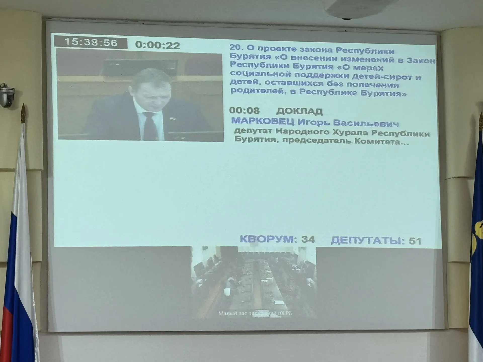 С докладом по 20-му вопросу повестки выступил председатель Комитета Народного Хурала по социальной политике Игорь Марковец. Он представил коллегам поправку, направленную на дополнительную защиту жилищных прав отдельной категории граждан.