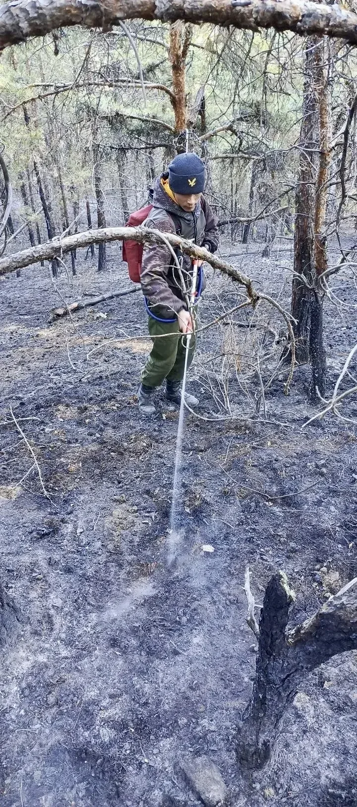 В Закаменском районе тайгу тушил 101 человек и 15 единиц техники. Накануне площадь возгорания достигла 25 га.