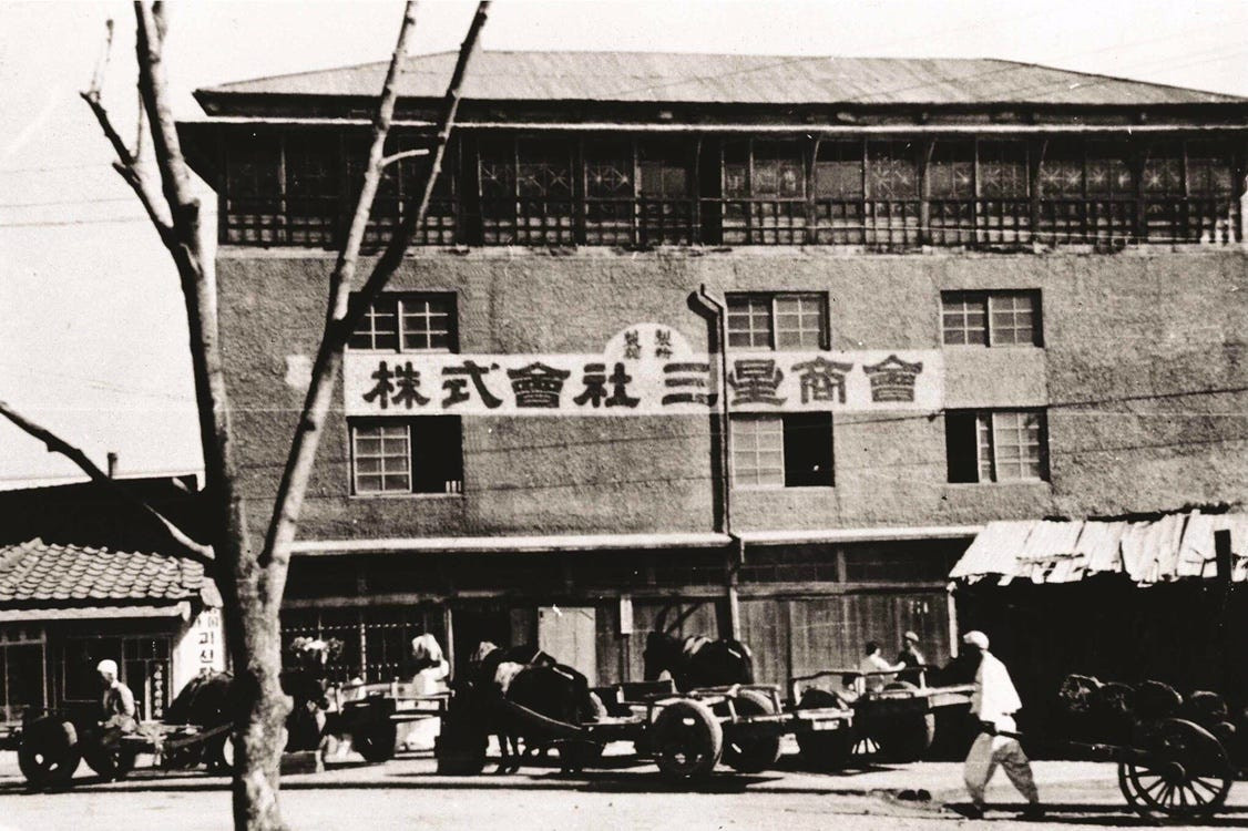 История Samsung восходит к 1938 году, когда Ли Бён Чхоль, владелец магазина в Тэгу, основал компанию, назвав её Samsung, что в переводе означает «три звезды». Первоначально это был небольшой продуктовый магазин с продажей лапши и сушеной рыбы. За годы, проведённые в бизнесе, компания постепенно расширялась. В 1947 году Ли открыл офис в Сеуле и организовал успешный сахарный бизнес.