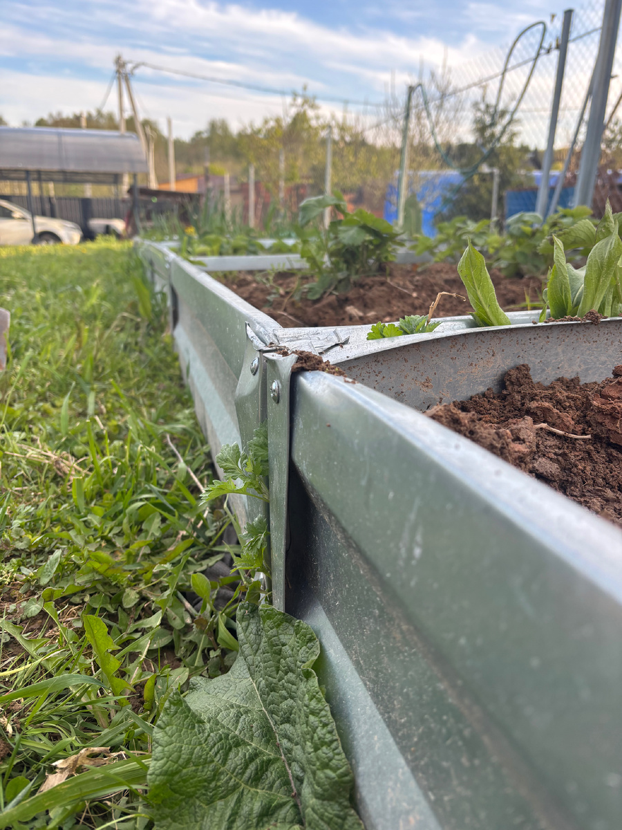 Плюсы: Оцинкованные или с полимерным покрытием, такие грядки обещают долговечность и современный внешний вид. Их не страшны грибковые болезни, а аккуратный дизайн покорит сердца эстетов.