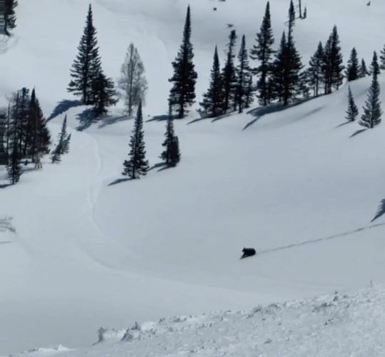 Любители экстрима увидели косолапого во время катаний. Зверь бежал вниз с перевала между Осиновкой и Бурятским цирком.