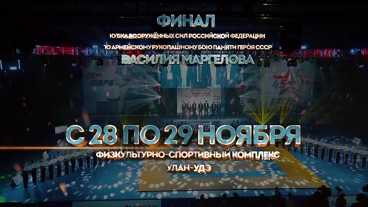С 28 по 29 ноября в Физкультурно-спортивном комплексе Улан-Удэ состоится Финал Кубка Вооружённых Сил Российской Федерации по армейскому рукопашному бою памяти Героя СССР, генерала армии, основателя Воздушно-десантных войск РФ Василия Филипповича Маргелова. Соревнования посвящены 95-летию со дня образования ВДВ.