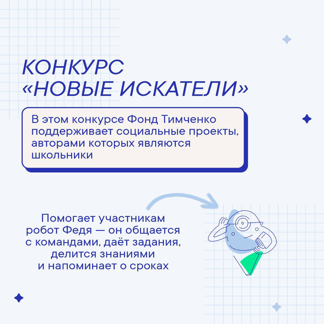 Не упусти шанс воплотить свою идею в жизнь! Подробности — в карточках и в группе конкурса. Робот Федя уже ждет, чтобы помочь во всём разобраться!